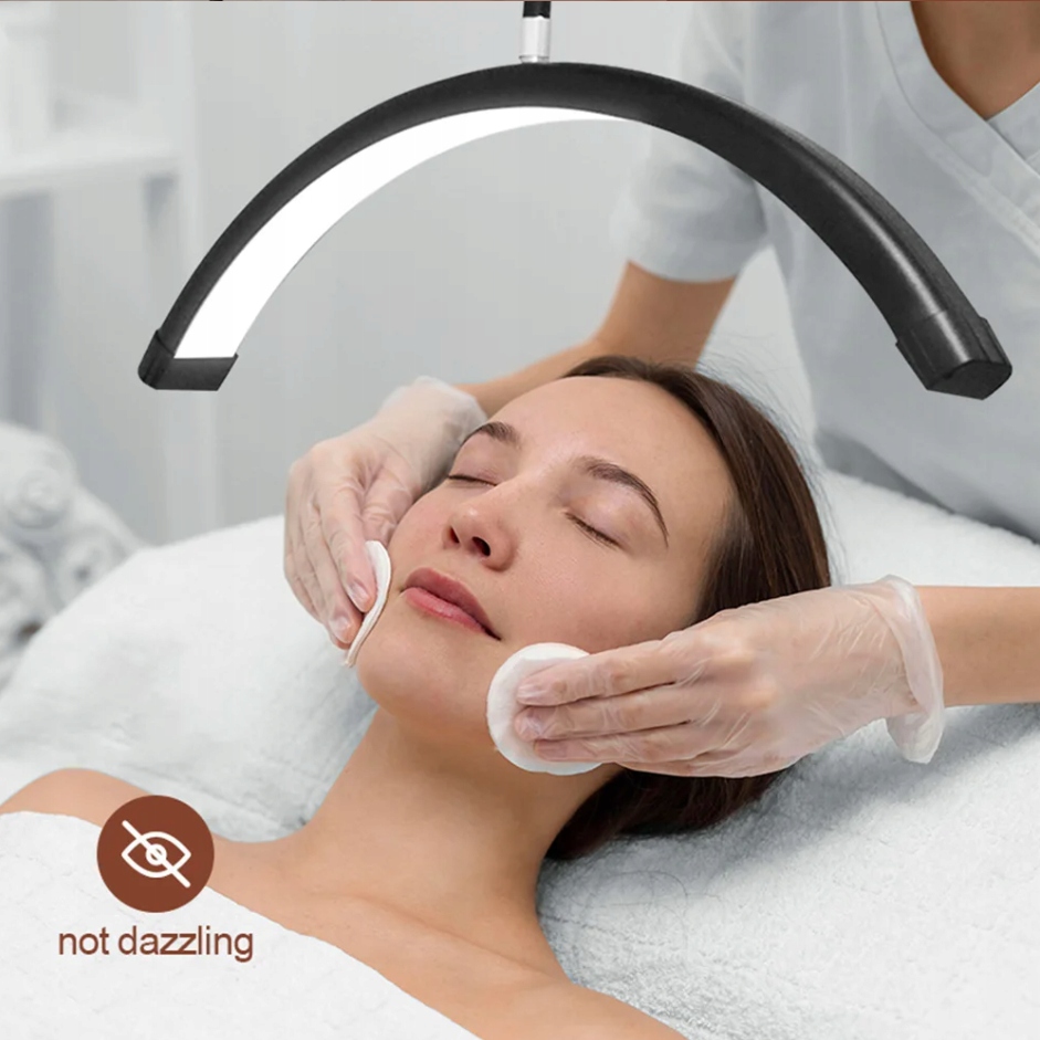 Nowoczesna lampa LED w kształcie półksiężyca to doskonałe rozwiązanie dla stylistów paznokci, wizażystów, kosmetologów oraz twórców internetowych. Zapewnia równomierne, miękkie światło, które perfekcyjnie doświetla twarz i dłonie, eliminując cienie i podkreślając detale.